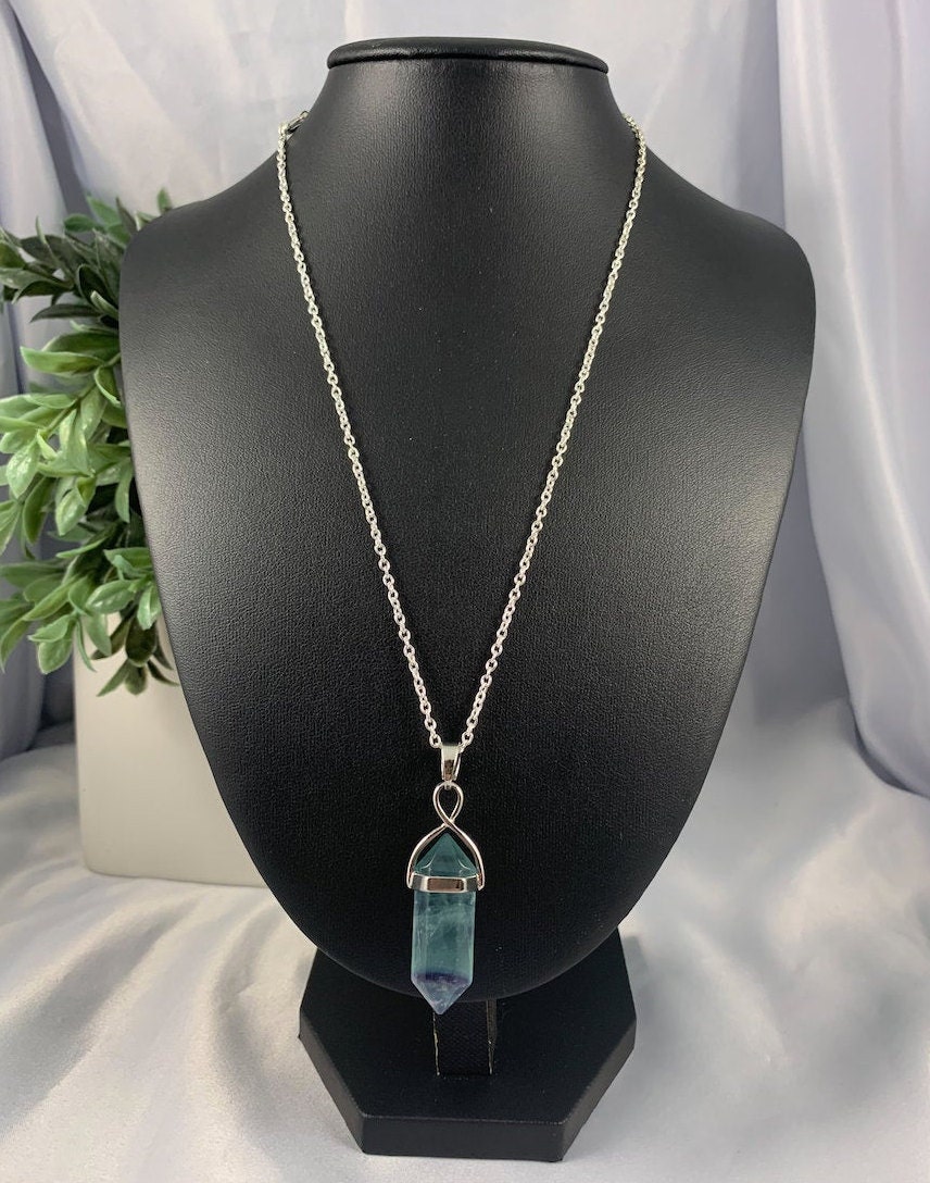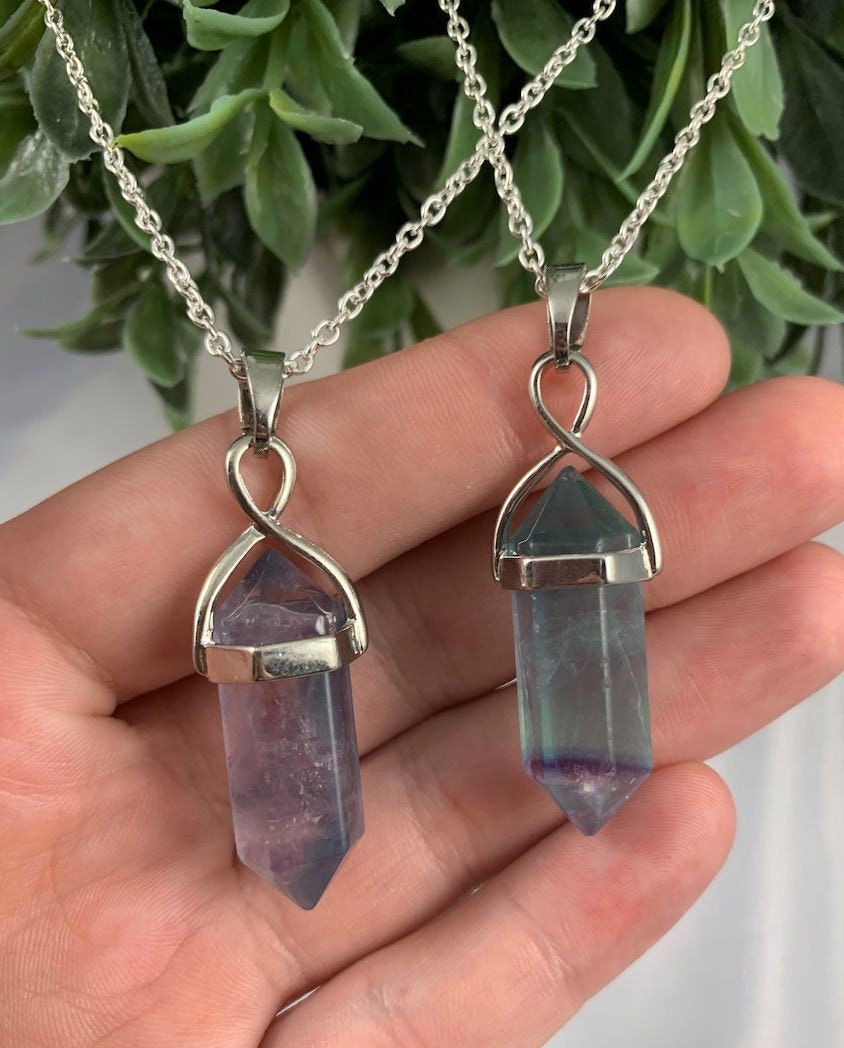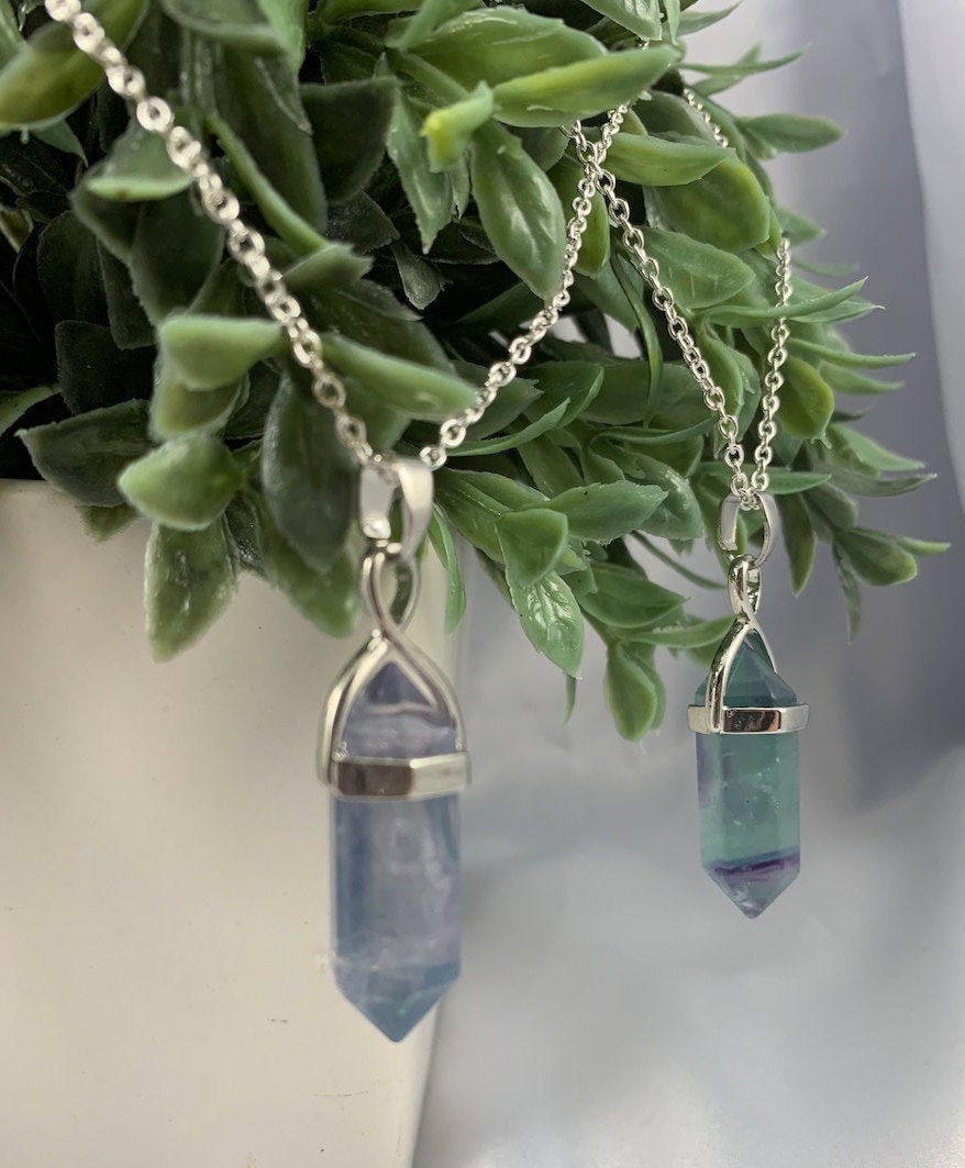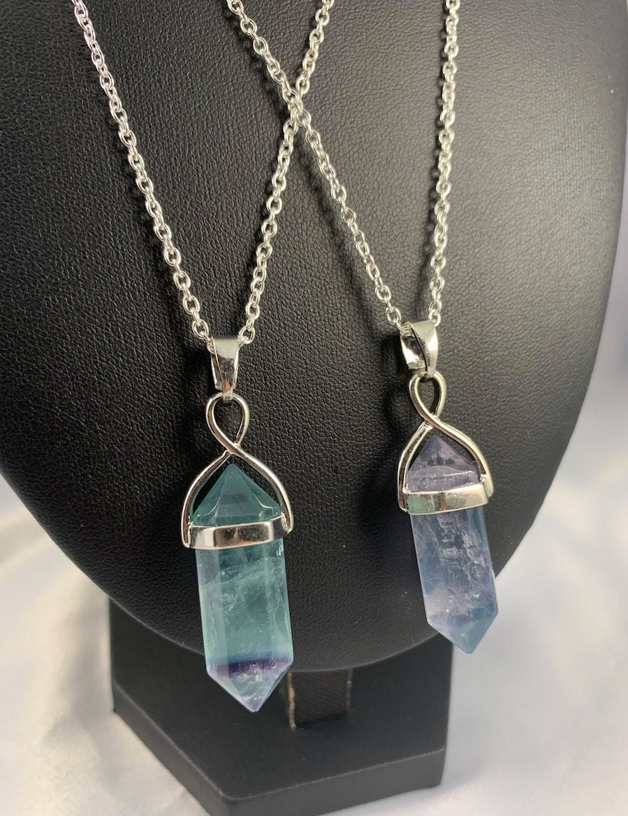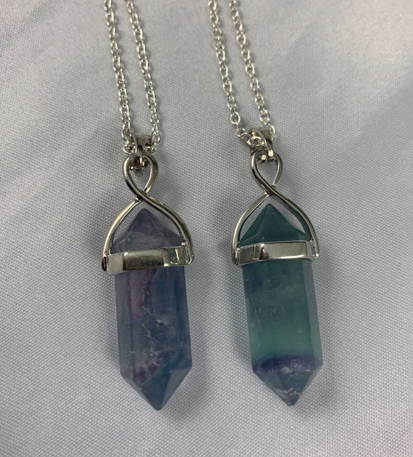 2 of these beautiful rainbow fluorite pendant necklaces for sale! <3